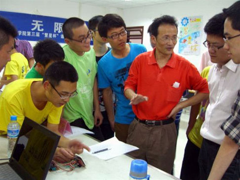 下午一点半,比赛正式开始。独具匠心的“点阵秒表”引得众人的围观及叹服,“多功能计算器”赢得杜鹏老师“造型简单而内容不简单”的赞美,不仅能实现简单的加减乘除计算,还能进行复杂的阶乘、开根等复杂计算,其中运用的算法,使得评委老师称赞连连,他们的作品最终也夺得了本次比赛的一等奖。由大二科协成员石剑桥和赵孔明领衔的两个参赛队伍展示了18jav