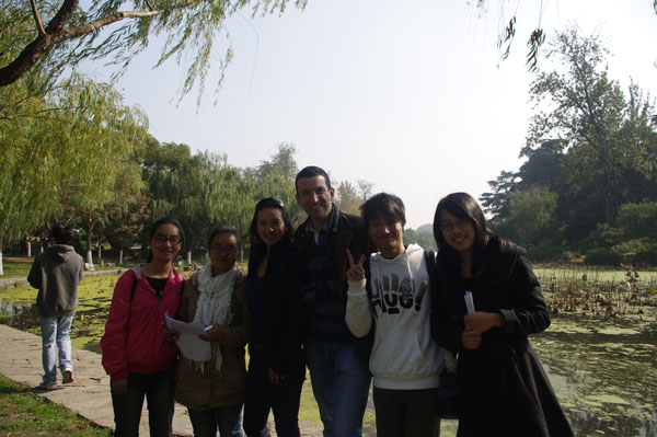 英语俱乐部英语角的同学与部长于9:30从南邮南门出发,分别前往目的地玄武湖与夫子庙,这次活动内容为找外国人进行英语交流并完成简单的英语调查。前往夫子庙的由英语角部长夏艳带领,同学们很快找到了外国人,并毫不羞涩的上前攀谈,在他们的努力下顺利地完成了交流和调查,着实锻炼了胆量与口语能力!前往玄武湖的由主席叶宇浩带领,由于玄武湖外国人很少,所以任务进行比较艰难。但是在同学们的努力搜寻下还是找到了目标,外国友人也是很热情的配合同学们完成活动。