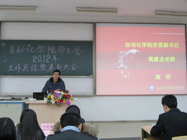 大会首先由黄建龙书记致辞。他充分肯定了学生会一年来所取得的成绩。他希望学生干部能树立学习意识,多观察多思考;明确服务理念,实现学生自我服务;加强团队合作,提高工作效率;落实自我管理,做好学生工作。他指出学生干部应当处理好三个关系:学习与实践的关系,传承与创新的关系,模范与带头的关系。随后,黄书记为18jav