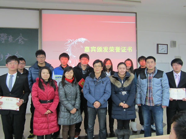 学生会主席团分别就自己分管部门做了工作汇报。他们主要剖析了工作中存在的问题和不足,以及今后努力的方向。叶晓勤老师宣读了2012年学生会优秀部长和优秀部员名单,并颁发了荣誉证书。最后学生干部代表贾艺典和张丹同学和大家分享了工作心得。