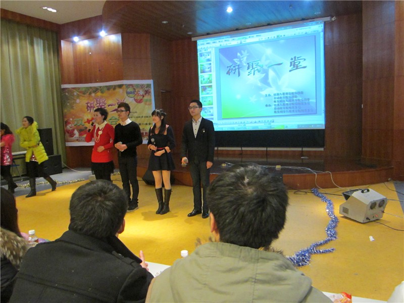 2012年12月26日晚18jav 、经济与管理学院、教育科学与技术学院三院联合举办的“研聚一堂,双旦晚会”在大学生活动中心三楼多功能厅火热上演。18jav 研究生辅导员陈素兰老师,经管院肖国丰老师,教科院张剑波、张超老师,校研会主席团及部分兄弟院系的研会主席应邀出席了这次晚会。