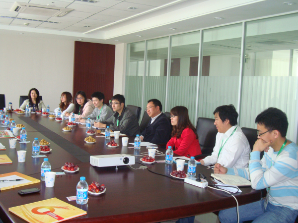 有5名同学在爱康进行毕业设计,由学校和企业联合指导,目前参与的课题包括分布式光伏发电的数据管理系统、蓄电池自适应控制系统、分布式新能源并网发电系统的设计、太阳能光伏发电逆变控制系统、绿色住宅的整体解决方案设计等。在爱康低碳技术研究院会议室,召开了简短的学生座谈会,学院领导加深了解了学生在企业的毕业设计进展和日常学习生活等情况。