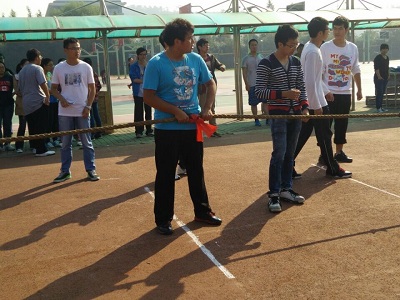 天空晴朗,与前几天相比稍显燥热,恰似同学们热烈的求胜心。比赛9点半开始,九点不到同学们就在操场做起准备。