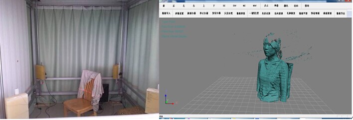 系统硬件由四个扫描测头及运动机构构成。每个扫描测头均由一个激光器和一个工业相机组成。运动机构由丝杠及电机组成。测量时电机带动丝杠旋转,进而带动安装在丝杠上的测量测头运动,实现人体不同位置的数据获取,进而完成人体轮廓点云数据获取,经过去噪、平滑及三角化等后期处理后生成人体轮廓数据的三角形网格模型。