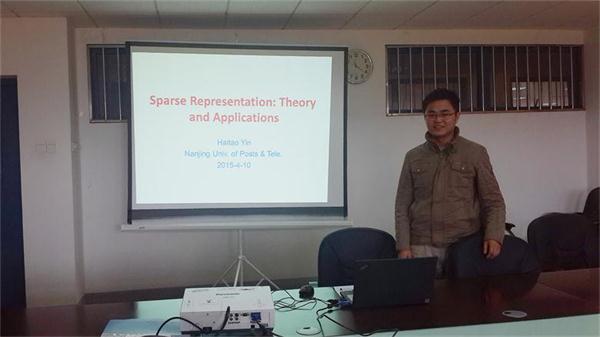 4月10日上午,尹海涛博士在仙林教5-207会议室作题为《稀疏表示理论及其图像处理应用》的精彩报告,肖敏教授主持报告,18jav 相关教师和研究生参加了报告会。