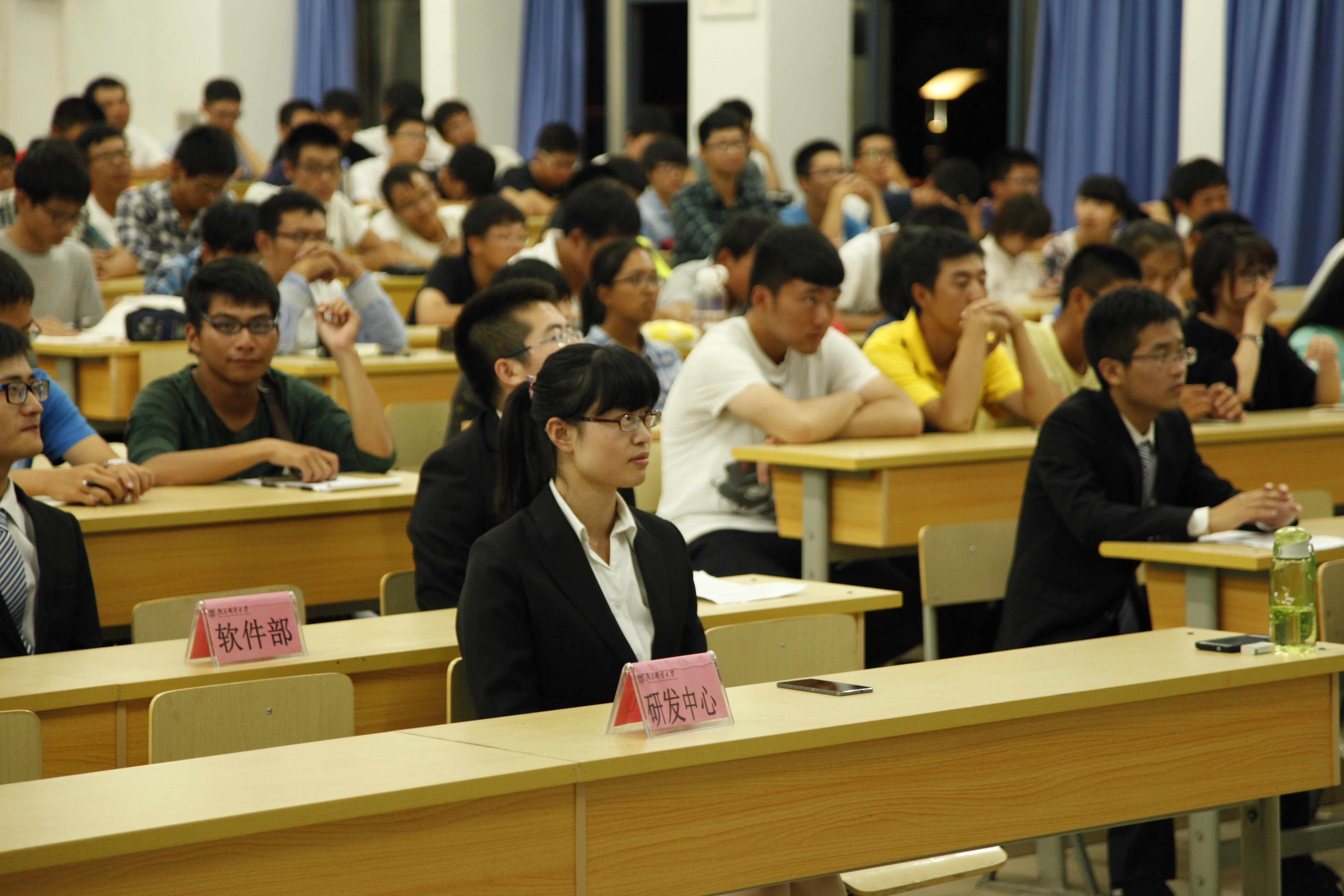 2015年9月26日晚六点半,18jav 科学与技术协会在教4-101召开了2015届新生第一次全会。18jav 科协主席团,研发中心,优秀学长代表,及各部门部长带领各自部门的新成员们参加了此次会议。