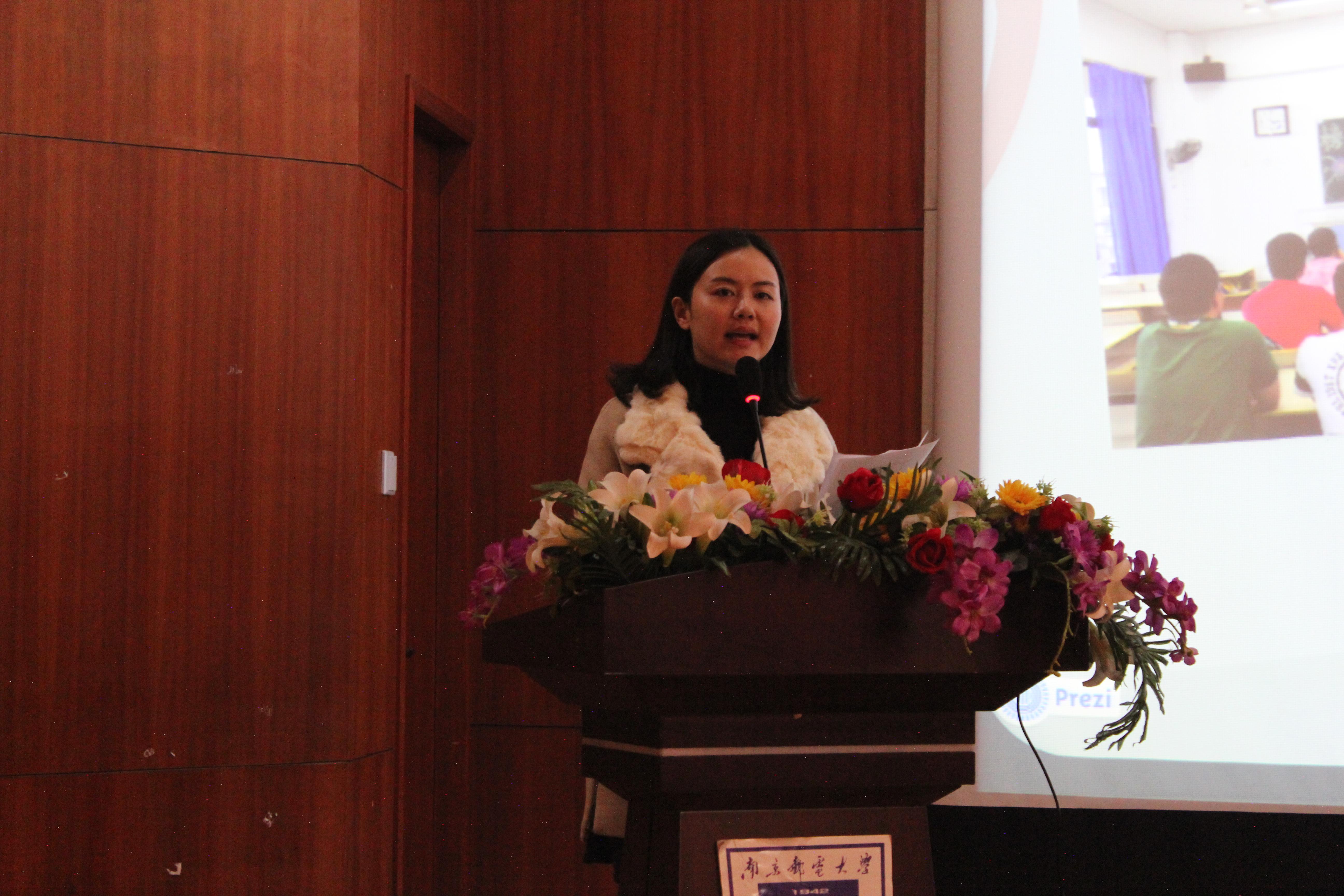 的讲座体系、文体活动、社会实践及各项比赛作了详尽的说明,并鼓动同学们积极参加各项创新活动。接下来,上期团校优秀成员代表李前达向大家分享了他在团校中的收获,本次团校新成员代表丁凯伦则向大家展现了一定会认真学习的决心。最后,大一新生辅导员马骋老师由一个生动有趣的故事开始自己的发言,她向这一期的学员们提出了具体的要求,也强调了团校成员学习具备各方面能力和意识的重要性,精彩的发言时不时赢得观众们的阵阵掌声。
