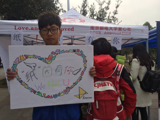 为了给栖霞区福利院的孩子们送去美丽的纸浆画并减轻环保型纸浆厂的运营负担,18jav 爱心社和18jav Enactus创行团队联合举办的环保型公益活动——“纸”因有你,于2015年12月11日在南二外场正式拉开帷幕。