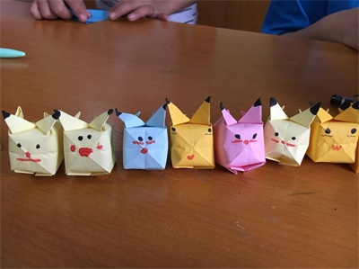 为了培养孩子们的动手能力和创造能力,实践团队员开展了手工制作的课程。在课堂上,通过队员们的悉心指导,孩子们亲手折出了可爱的小兔子和皮卡丘。随后进行了有趣的剪纸活动,孩子们发挥出无尽的想象力剪出了多种多样的图案。通过课堂上的学习,提高了孩子们的动手能力和思维创新能力,进一步让孩子们学会独立思考。