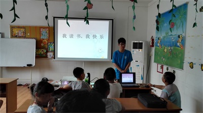 实践团队员正在引入课题“我读书,我快乐”