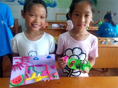 2016年7月14号,18jav 暑期社会实践暨湖山社区“向日葵·氧吧”夏令营第九天的活动顺利举行。为陶冶孩子们的艺术情操,提高孩子们的动手能力,审美能力及表现美、创造美的能力,实践团队员们开展了橡皮泥创意及音乐欣赏活动。