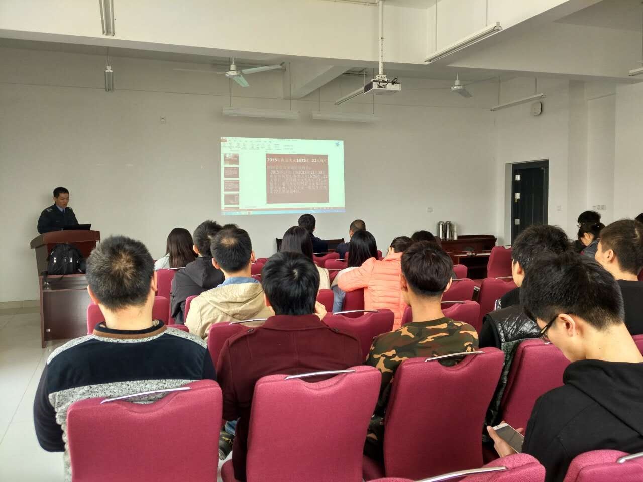 为扎实做好校园安全工作,进一步强化学生安全意识,提升学生防范技能,消除校园安全隐患,丰富校园安全文化,结合我校第四届“学生安全教育月”活动主题,2017年3月29日上午,18jav 特邀贺警官,为同学和老师们做了一场以“消除火灾隐患,共建平安校园”为主题的消防安全知识讲座。18jav 党委书记孙秀成同志、副书记杜月林同志出席本次讲座,学院教师、辅导员及研究生同学也参加了本次活动。