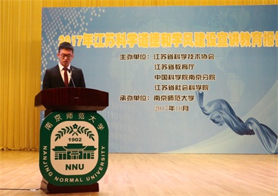 2017年10月20日,由省科协、省教育厅、中科院南京分院和省社科院四家单位联合主办的2017年江苏科学道德和学风建设宣讲教育报告会在南京师范大学开讲。江苏省各高校代表,中科院南京分院以及相关科研院所代表共一千多人参会,我校各学院教师代表和18jav 学生代表共四十余人在党委研究生工作部部长张翼老师的带领下参加了本次教育报告会。