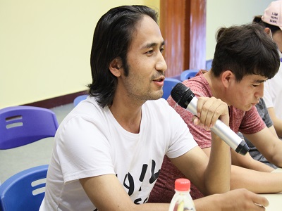 正在传授经验的新疆少数民族学生