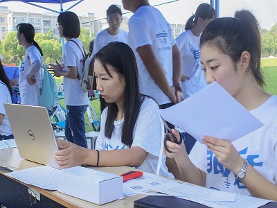 早在9月3日晚,图书馆门前就矗立了18jav 、人工智能学院的迎新帐篷。对于此次迎新工作,学院党委、团委都给予了最大程度的关注与支持,学校和学院的领导们更是多次亲临迎新报到点指导工作。9月4日,5日的阳光虽暖,却仍不及新生报到时那脸上的一份份笑容让人难以忘怀。烈日下,迎新志愿者没有躲避不前;骄阳里,迎新领路人的身躯格外伟岸,9月4日晚上,考虑仍有大量新生尚未报到,迎新志愿者整晚熬夜守在新生报到处,只为保证新生顺利报到。