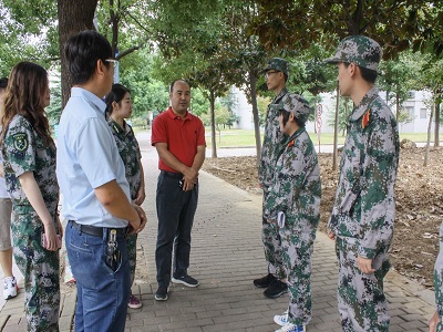 在训练场地,孙书记亲切慰问了正在参加军事训练的新生,并鼓励新生们发扬吃苦耐劳的精神,为此次军训交上一份完美答卷。随后,学院领导就新生训练进度及身体状况与新生辅导员进行了深入交流,要求辅导员加强与教官的沟通,既要关心爱护学生,又要鼓励学生加强锻炼,认真完成军训任务。最后,领导们还对军训教官表示了衷心的感谢,并指出,军训是新生进入大学的第一课,希望教官从严要求,通过军训增强新生们的团队意识、自律意识,不断完善自己、突破自己。在慰问之余,学院领导也为教官和新生们送去了解暑的饮品,给艰苦的军训训练添上了一丝清凉的慰藉。