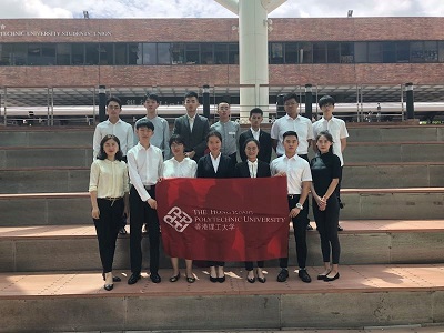每天下午同学们都会被送至香港理工大学进行相关课程的学习。走进校园便被遍地的红色建筑物包围了,香港的大学每栋楼都是以人名命名的。香港理工大学的校园并不大,校内业没有宿舍,处在香港的繁华地带的它成为了一道独特的风景,让每个人都留下了深刻的印象。与此同时,同学们也为校内浓重的现代化气息所惊叹。