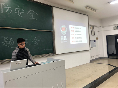 本次讲座围绕消防安全展开,由生活委员张裕鸿讲解了大学生消防知识并对同学们进行了灭火基础培训,旨在使我班同学了解身边的消防安全隐患,可以及时的预防火灾的发生,并学会紧急处理措施,从而更好的保障我们生命财产的安全。