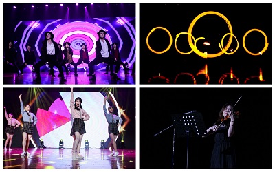 舞蹈类节目有2015级辅导员马骋老师、2018级辅导员张逗老师和18jav 研究生同学们带来的热辣潇洒的合舞《Black》;2018级智电专业同学编排的动感酷炫的荧光舞《光影青春》;大一大二同学组合带来的清新甜美的舞蹈《我的未来有点甜》;2018级辅导员缪甜佳老师和大一女生们带来的轻盈温婉的《茉莉花》,尽管风格不同,但他们的每一个舞步、动作都牵动着全场观众的心神。
