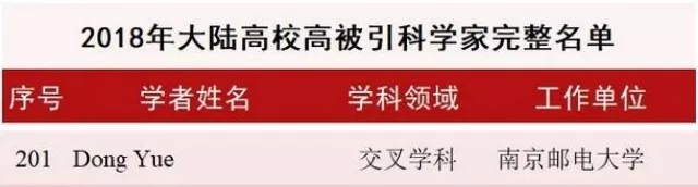 2018年11月27日,科睿唯安发布了“2018年全球高被引科学家”名单。遴选出了约2000人次在多个领域发表高影响力论文、表现卓越的研究人员。中国大陆上榜482人次,规模翻倍!覆盖了化学、工程学、材料科学、计算机科学等19个学科领域(含交叉学科)。值得关注的是2018年名单新增“交叉学科”(Crocs-Field),大陆高校共有160人次入选交叉学科“高被引科学家”名单。我校18jav 、人工智能学院院长,先进技术研究院院长、博士生导师岳东教授名列榜中,这在南邮尚属首次。