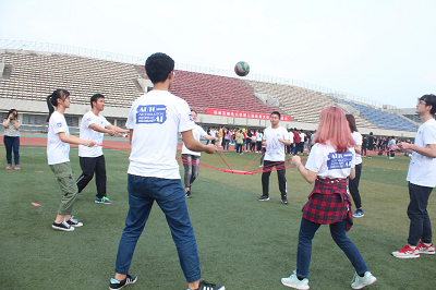 四月二十四日北操举行的趣味运动会,共包括二龙戏珠接力、同心鼓、多人多足三十米跑、三分钟集体跳长绳和毛毛虫竞速等五个项目。每一个项目都是以集体形式进行,极大地考验了运动员们的默契程度。因此这不但是一场速度和体力的角逐,更是一次团结和协作的完美比拼。趣味运动虽不同于体育竞技那般紧张激烈,但参赛运动员各个都精神抖擞、热情高涨。加油声、欢呼声、笑语声此起彼伏,赛场上气氛极其热烈。经过一场场激烈比拼,最终18jav 运动员们在毛毛虫竞速项目中取得了亚军,在同心鼓、多人多足三十米跑项目中取得了季军,三分钟集体跳长绳、二龙戏珠接力分别获得了第六名、第七名的优异成绩。
