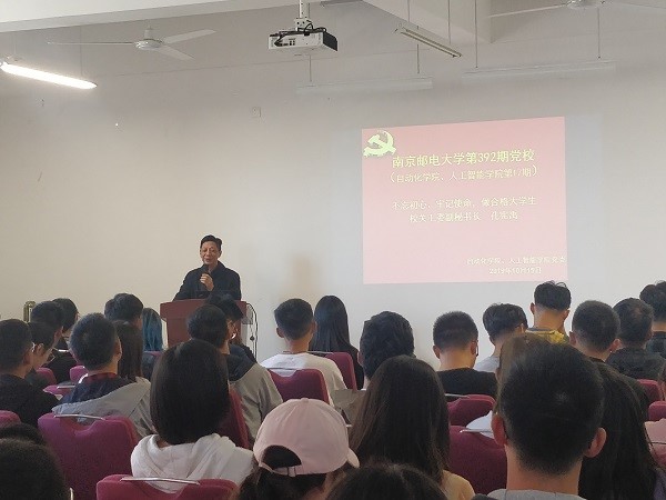 为进一步做好发展党员工作,加强对入党积极分子的培养教育,提高入党积极分子思想政治觉悟,坚定理想信念,端正入党动机, 2019年10月15日下午,18jav 、人工智能学院党委在自动化学科楼319会议室举行了18jav 第392期(18jav 、人工智能学院第17期)入党积极分子培训班开班典礼。18jav 、人工智能学院党委副书记杜月林、校关工委副秘书长孔宪禹、组织员李艳梅出席了此次开学典礼,共119名培训班学员参加了此次入党积极分子培训。