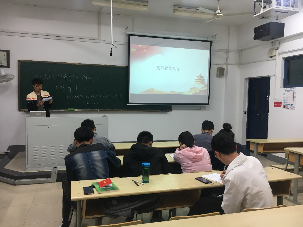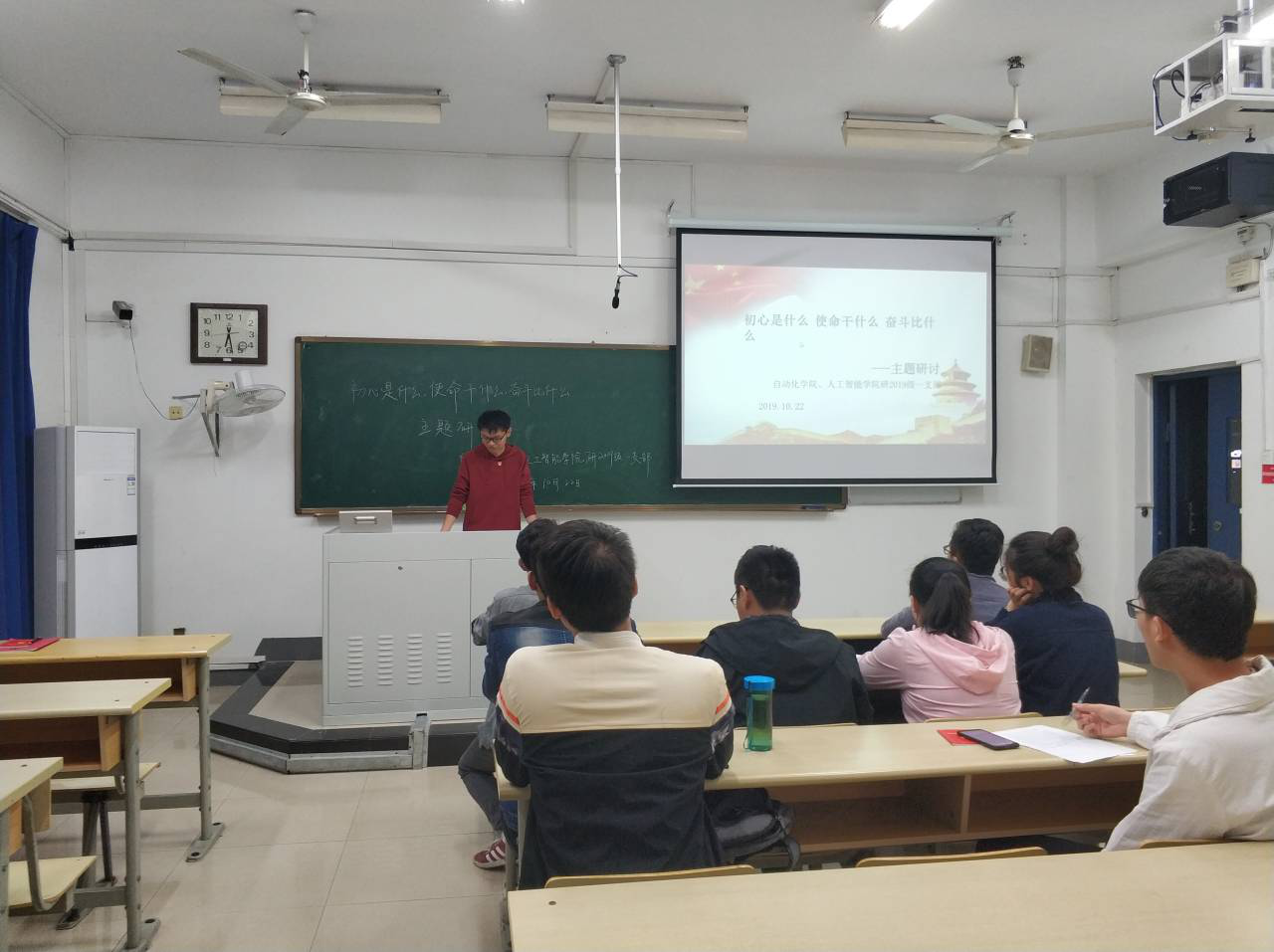 2019年10月22日晚6点半,18jav 、人工智能学院研2019级一支部党员在教4-104组织开展“初心是什么,使命干什么,奋斗比什么”的主题研讨,支部书记刘良辰主持会议、交流心得体会。