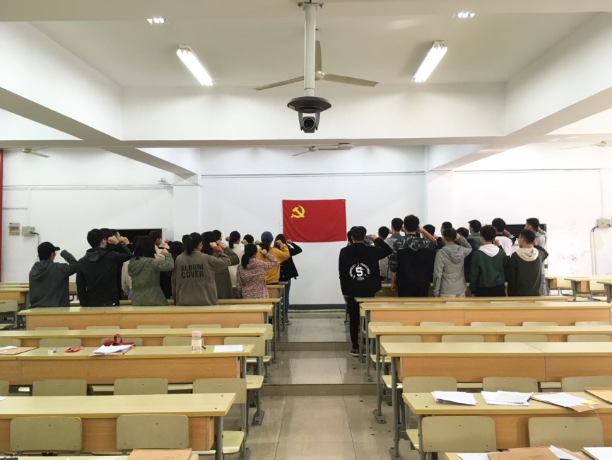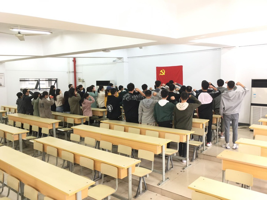 为了深入推进“不忘初心、牢记使命”主题教育,18jav 、人工智能学院本2016级学生党支部在支部书记郑春春的带领下,于2019年10月28日,在教4-201教室开展“四重四亮”主题教育。通过重读入党志愿、重温入党誓词、重忆入党经历、重问入党初心,激励全体党员不忘初心、牢记使命、担当作为。