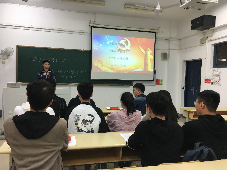 2019年10月29日晚6点半,18jav 、人工智能学院研2019级一支部在教4-103教室开展了在“四重”中深悟初心的主题党日活动。本次活动由支部书记刘良辰主持,支部书记向大家介绍了“四重”的具体内涵,即“重读入党志愿,重温入党誓词,重忆入党经历,重问入党初心”。