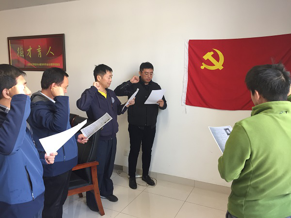 支部成员重读入党志愿,回顾了入党的心路历程,并面对鲜红党旗,庄严宣誓。