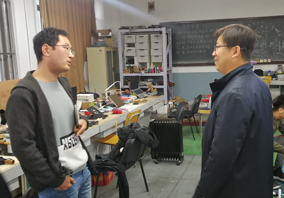 调研座谈中,李梅峰副书记分别从18jav概况 、辅导员队伍建设、双创师资队伍建设、创新人才培养工作改革及成果、学科专业建设与科研以及现代邮政学院相关情况等几个方面介绍了北邮18jav 的发展历程及布局。之后学院实验中心主任宋原老师重点介绍了北邮自动化在ROBOCON机器人大赛的人才培育情况,并带领杜书记一行参观了机器人创新实践基地。