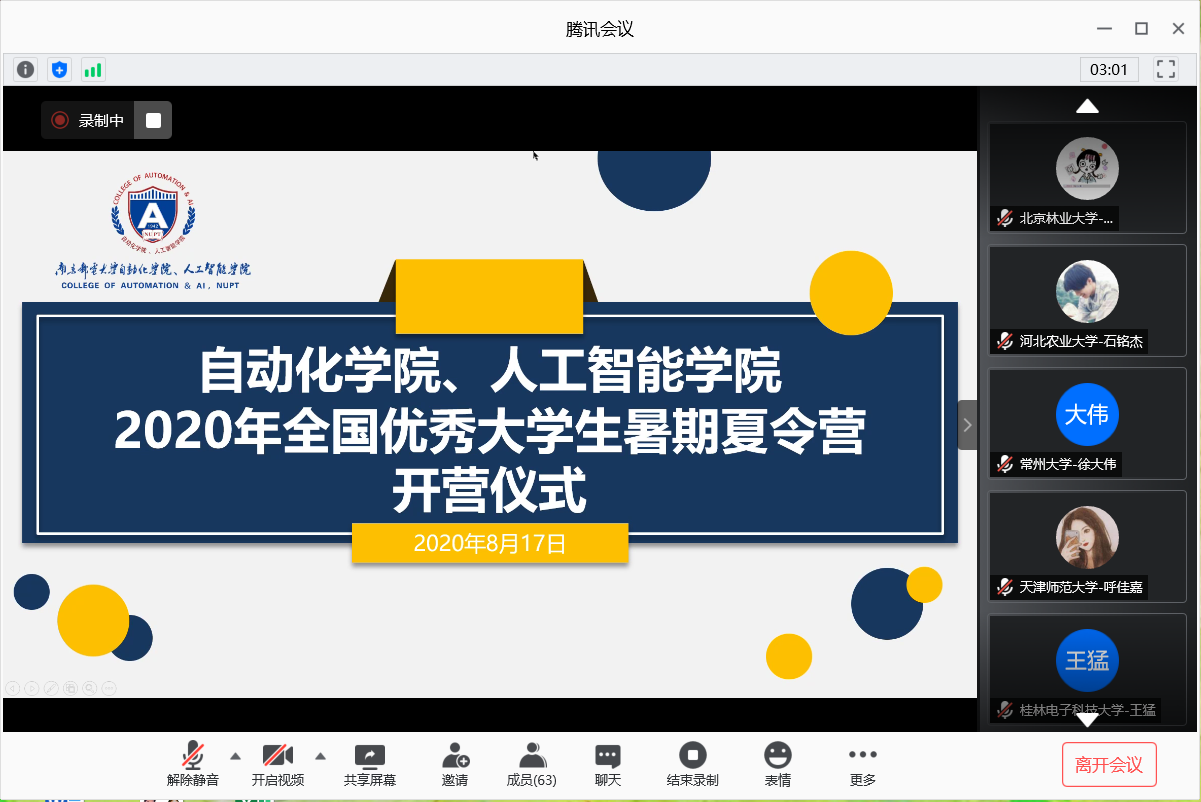 8月17日、18日,18jav 2020年全国优秀大学生暑期夏令营通过腾讯会议在线上成功举行。经过学院的精心组织,本次夏令营活动共遴选七十二名来自全国各高校的优秀学员参加。