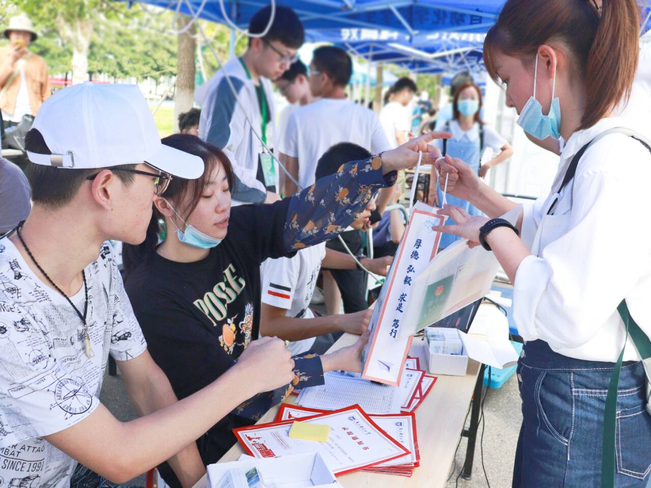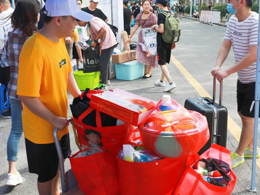 按照学校疫情防控要求,新生一律不得由家长陪同入校。自新生踏入校园,新生将由迎新志愿者全程陪同至迎新帐篷完成入学报到全部流程,他们也将收获来自18jav 特别定制的“新生大礼包”,在专属签名墙上留下签名并拍照留念,最后由志愿者引导至新生宿舍。