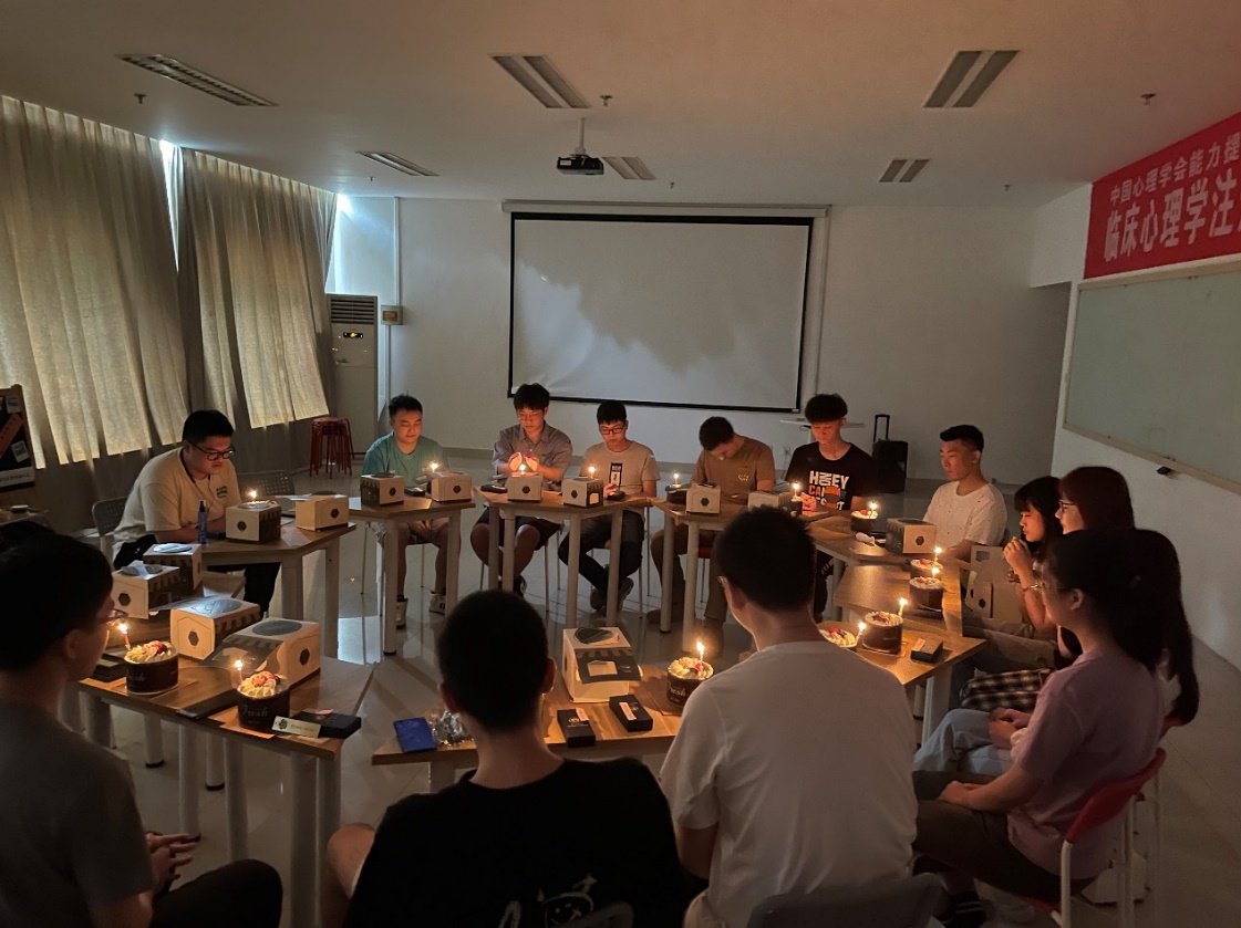 在分会场,同样的 “生日蹲” 破冰游戏,让原本不熟悉却在同一个月生日的同学很快融入了欢乐的氛围中,毕业班辅导员带领大家回顾了大学四年的美好生活,并为同学们发放了生日“贺礼”,为同学们送上了最美好的祝福。同学们集体点燃蜡烛并许下对未来生活的美好愿望。