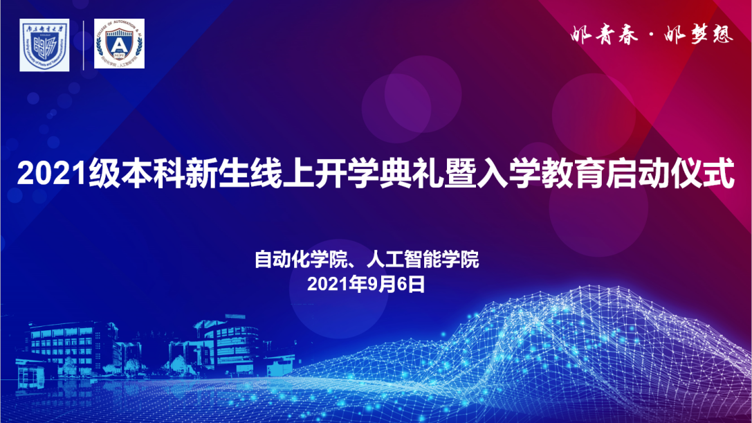 奋斗铸就成功,卓越源于努力。新学期启航新征程,希望2021级新生以梦为马,不负韶华,怀揣勇气与梦想,铭记使命和担当,积蓄知识与能量,迎接机遇和挑战,努力成长为坚强勇毅的自动化人,能够担当民族复兴大任的时代新人。