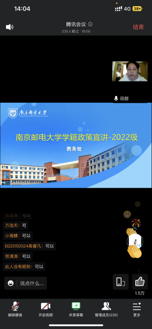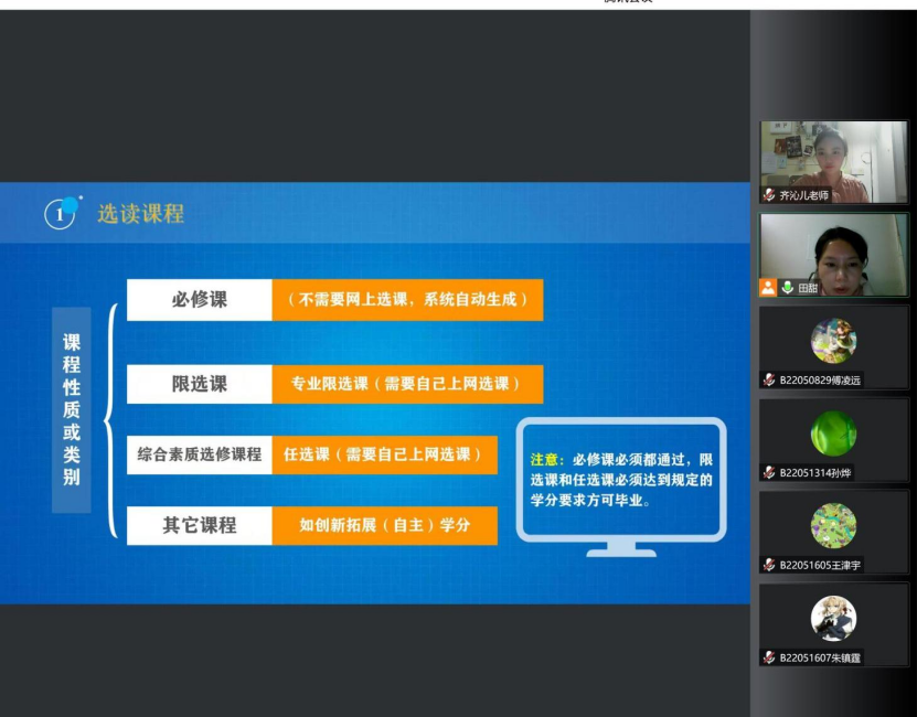 为帮助2022级新生了解学籍相关政策与教学相关的管理规章制度,在教务处学业指导中心的指导下,18jav 于10月19日14:00、19:00举行2022级新生学籍政策宣讲活动,两次宣讲会由教务处田甜老师担任主讲,新生辅导员和全院2022级新生线上参加会议。