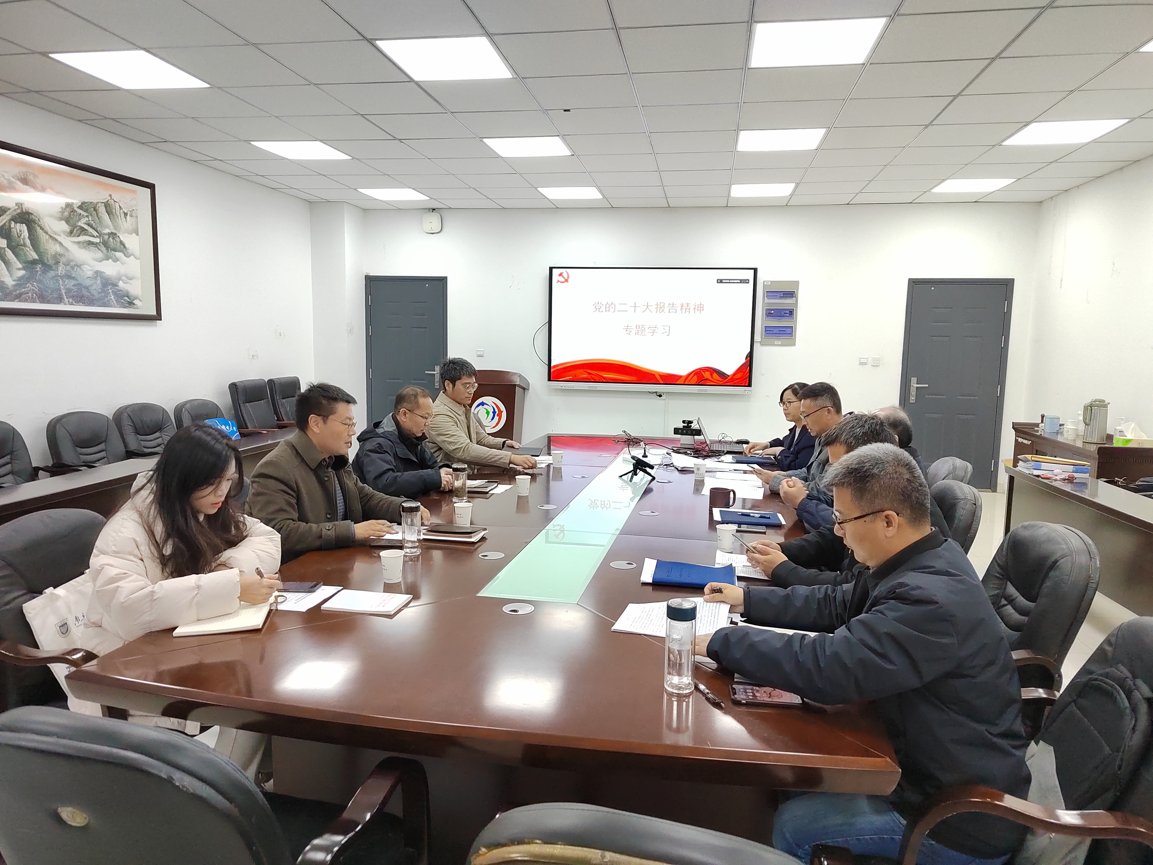 学习会上,中心组集中学习了《习近平:高举中国特色社会主义伟大旗帜 为全面建设社会主义现代化国家而团结奋斗——在中国共产党第二十次全国代表大会上的报告》第五、第八部分内容,中心组成员孙委委、王强、王乃艳作学习重点发言。