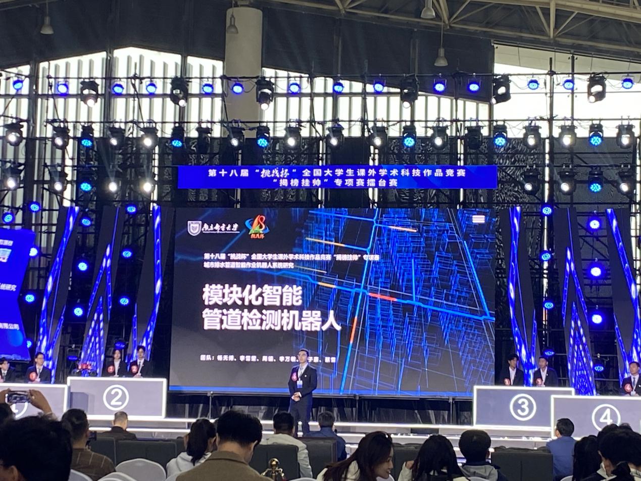 2023年10月,第十八届“挑战杯”全国大学生课外学术科技作品竞赛终审决赛在贵州闭幕。经过激烈角逐,18jav 报送作品“模块化智能管道检测机器人获城市排水管道智能作业机器人系统研究方向(发榜单位:武汉数字建造产业技术研究院有限公司)特等奖。