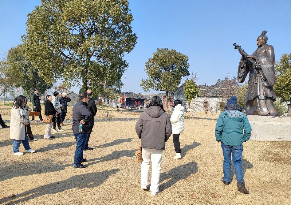 随后,大家抵达历史遗址九里季子庙参观,季子庙是为纪念春秋吴国名贤季札而建的寺庙。季子是春秋时期杰出的政治家、思想家、外交家。他用“三让王位”“徐墓挂剑”等事迹践行了“受礼、诚信、仁义、贤达”的风尚,成为后世仰慕的典范。大家在 “季子铜像”、“季子墓碑”等地驻足瞻仰,近距离感受“春秋第一贤人”季子诚信文化精神。大家表示,诚信是中华民族的传统美德,是和谐社会的道德基础,是每个社会公民的立身之本,在今后要以诚载道、以信立人,把诚实守信落实到教书育人实际行动中。