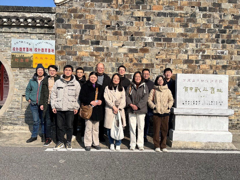 为深入学习贯彻党的二十大精神,持续深化学习贯彻习近平新时代中国特色社会主义思想主题教育成效,不断增强基层党组织的政治功能和组织功能,强化党员诚信意识,推动校企人才联合培养。2024年1月28日,18jav 、人工智能学院教工第三党支部赴丹阳市开展了“红色精神永传承,校企协同共育人”主题党日活动,支部党员和部分测控技术系教职工先后前往贺甲战斗遗址纪念馆、九里季子庙以及江苏省双木测控技术有限公司参观学习。