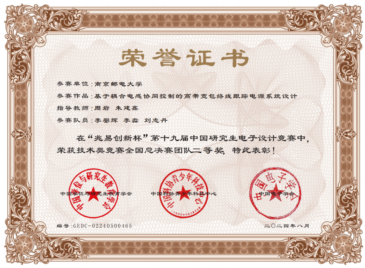祝贺18jav 学子在第十九届中国研究生电子设计全国总决赛中取得佳绩