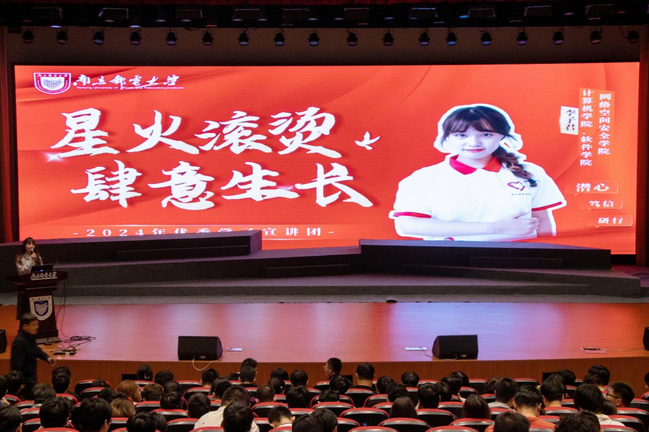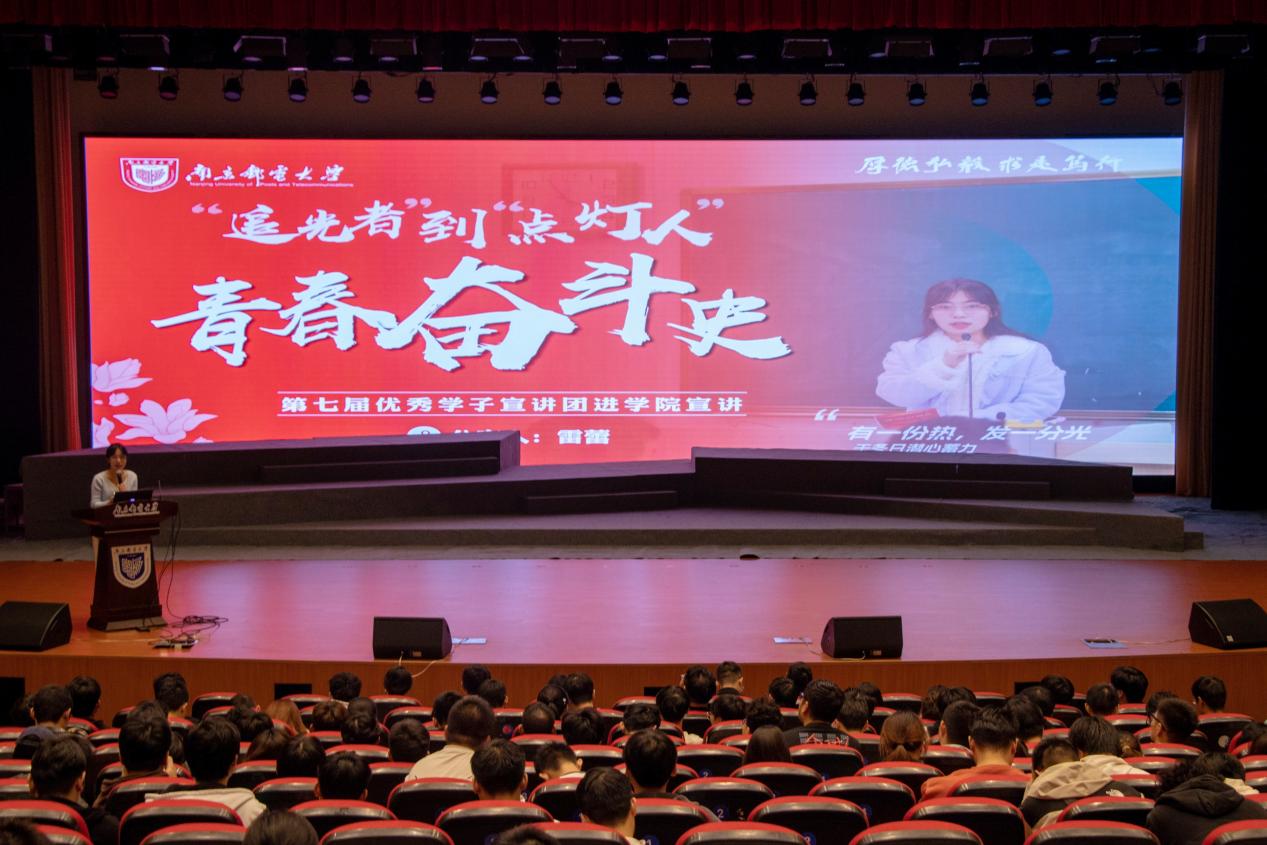 为持续推进“学在南邮”优良学风建设工作,确保学风建设工作提质增效。充分发挥各类先进典型在学生成长中的示范引领作用,打造“用身边人讲身边事,用身边事影响身边人”的朋辈教育理念,传递“向榜样学习、与榜样同行”的精神内核。10月31日晚,校第七届优秀学子宣讲团走进18jav 、人工智能学院,500余名师生于青春剧场内共上一堂信仰公开课、梦想公开课、思政公开课。学院党委副书记、副院长孙委委,辅导员桑学峰、齐沁儿出席。活动由齐沁儿老师主持。