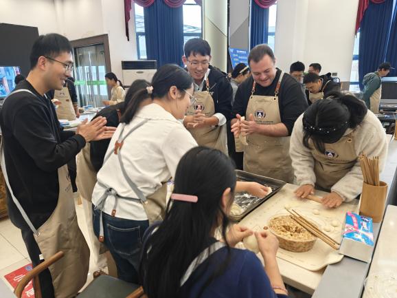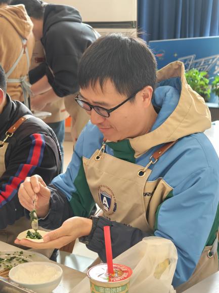 活动当天,老师们陆续抵达活动现场,领取学院工会统一定制的围裙,自行组队,开始包饺子。小组成员分工协作,有人擀皮有人包,一张张洁白的面皮配上精心调好的馅料在大家的手中变成了一个个胖嘟嘟、圆鼓鼓的饺子。现场气氛和谐、笑语不断,大家时而探讨心得,时而过招切磋,冬日的阴霾在欢声笑语中消散。最后把包好的饺子下锅,热腾腾的饺子,暖融融的情谊,大家边吃边聊,尽情享受美食带来的满足。
