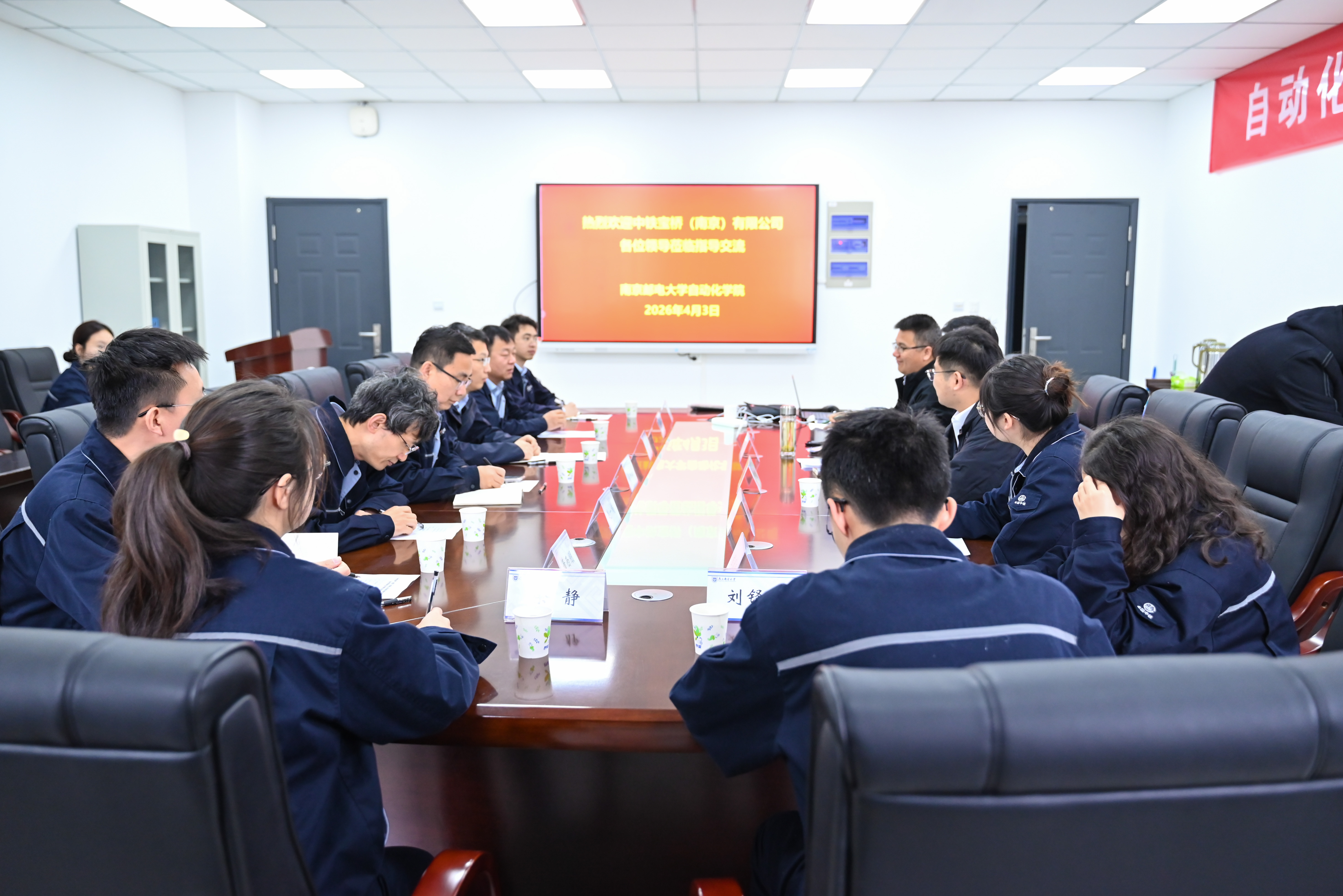 为深入贯彻落实党的二十届四中全会精神,扎实推进“一融双高”建设,以高质量党建引领校企协同创新,2026年4月3日,中铁宝桥(南京)有限公司总工程师吴钟敏率队到访18jav ,开展“党建引领产学研合作”专题交流。学院党委书记张翼主持座谈会,副院长徐丰羽,18jav 教师、南京新港产业创新研究院副院长吴巨爱及18jav 教师代表参会。